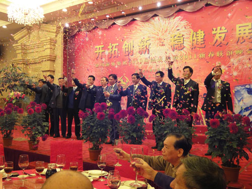 金虎奮蹄開錦繡,玉兔迎春展宏圖;辭舊迎新齊相聚,金馬歡慶喜迎春。2011年2月14日晚,張溪海港城宴會(huì)大廳燈火輝煌,喜氣洋洋,金馬公司“開拓創(chuàng)新,穩(wěn)健發(fā)展”2010年總結(jié)表彰暨2011年新春聯(lián)誼晚會(huì)在此隆重舉行。