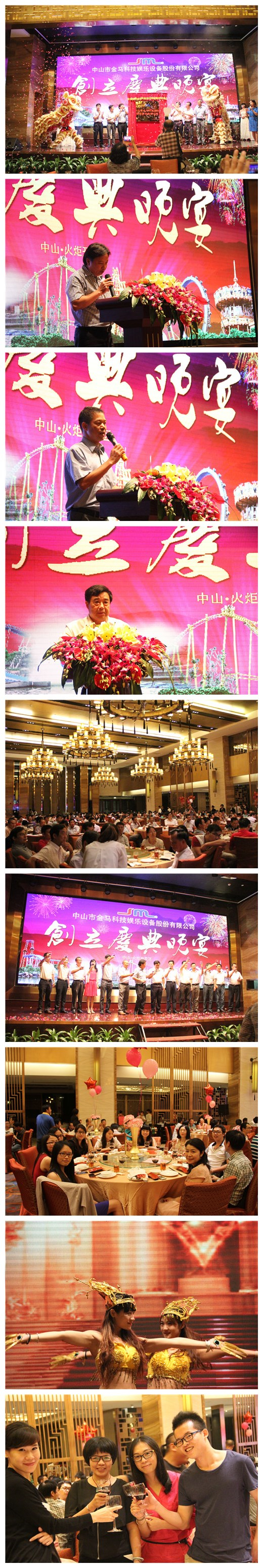 晚上19時,在一片喜慶熱烈的龍獅舞動中,慶典活動正式拉開帷幕。首先由鄧志毅董事長上臺致辭,他深情答謝各界人士的鼎力支持及金馬人的拼搏奮斗,并滿懷激情鼓舞公司上下攜手共進(jìn),以產(chǎn)品創(chuàng)新、管理創(chuàng)新、經(jīng)營創(chuàng)新共筑金馬游樂王國夢!隨后,火炬開發(fā)區(qū)管委會總經(jīng)濟(jì)師梁紹華先生發(fā)表致辭,他對金馬落戶火炬所起的龍頭帶動作用表示高度認(rèn)可,并對公司未來發(fā)展寄予厚望。緊接著,原政協(xié)副主席、金馬游藝創(chuàng)始領(lǐng)導(dǎo)李武彪先生上臺講話,他為現(xiàn)場觀眾娓娓道來金馬走過來的發(fā)展路,并寄語金馬以創(chuàng)新引領(lǐng)中國文化裝備制造位居世界前列。此后,慶典活動進(jìn)入最激動人心的時刻——中山市金馬科技娛樂設(shè)備股份有限公司揭牌儀式!在到場的領(lǐng)導(dǎo)、嘉賓及金馬人的見證下,各轄區(qū)領(lǐng)導(dǎo)、李主席及鄧總共同手?jǐn)y紅線,帷布徐徐拉開,金馬股份公司正式揭牌!在龍獅獻(xiàn)瑞、鑼鼓祥鳴中,大家都送去了激動、祝賀的掌聲,祝愿金馬加快與資本市場對接,早日上市實現(xiàn)金馬游樂王國夢!在隨后的祝酒環(huán)節(jié)中,鄧總領(lǐng)銜公司高管、老領(lǐng)導(dǎo)上臺,祝愿到場領(lǐng)導(dǎo)、嘉賓、金馬人步步高升、萬事如意,祝愿金馬事業(yè)興旺騰飛!在《好日子》的樂聲中,晚宴正式開始,現(xiàn)場好不熱鬧,臺上舞蹈翩躚、鼓舞飛揚(yáng),臺下暢懷歡聚、喜逐眉梢,與會人員度過了一個美好的夜晚。