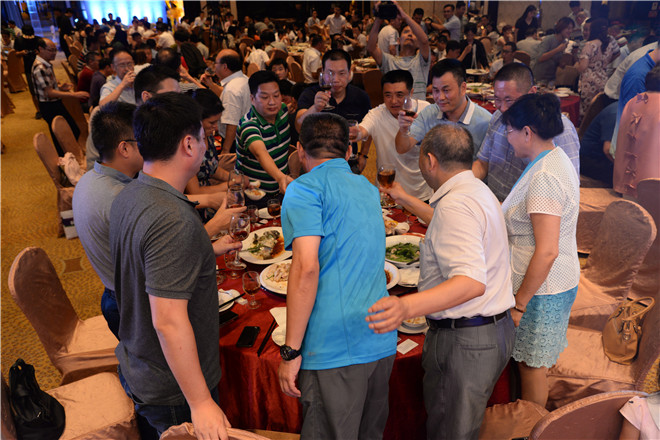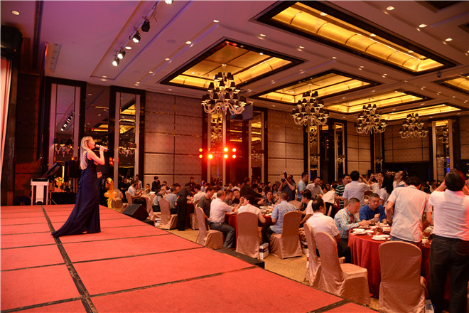 晚宴現(xiàn)場(chǎng),公司全新拍攝的企業(yè)形象片正式對(duì)外展示,以緊跟時(shí)代腳步與公司發(fā)展軌跡的內(nèi)容,向眾客商、嘉賓及媒體呈現(xiàn)了一個(gè)突飛猛進(jìn)的金馬形象。在對(duì)2016年公司研發(fā)的新產(chǎn)品集錦進(jìn)行回顧時(shí),眾人更是生動(dòng)形象地看到了一個(gè)實(shí)力金馬,正如劉喜旺總經(jīng)理的致辭所言“中山金馬追求又好又快的發(fā)展,追求厚積薄發(fā)式的飛躍產(chǎn)品厚積薄發(fā),量的積累已經(jīng)達(dá)到了質(zhì)的突變”。宴會(huì)上,滿堂燈光璀璨奪目,鮮花氣球五彩繽紛,來(lái)自各地的客商、嘉賓熱烈交談,酒斟交錯(cuò)間歡聲笑語(yǔ)不斷,席間還伴以助興歌舞與魔術(shù)節(jié)目、幸運(yùn)抽獎(jiǎng)游戲、客戶互動(dòng)采訪環(huán)節(jié)等,一種愉悅、和樂(lè)的氛圍油然而生。近三個(gè)小時(shí)的歡聚后,晚宴在一場(chǎng)《越來(lái)越好》歌伴舞節(jié)目的祝福和憧憬中慢慢降下了帷幕。