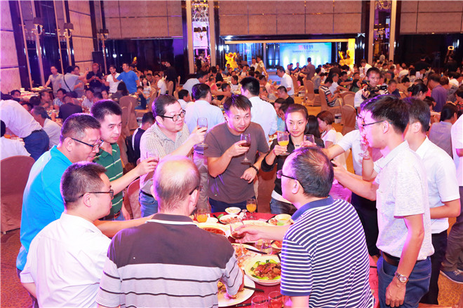 金色八月,熱情似火,有朋自遠(yuǎn)方來(lái),逢盛事喜相聚。為了對(duì)即將召開(kāi)的第十屆中國(guó)(中山)國(guó)際游戲游藝博覽交易會(huì)表示熱烈的祝賀,以及對(duì)多年來(lái)一直關(guān)心、支持金馬健康發(fā)展的合作伙伴和嘉賓表示誠(chéng)摯的歡迎和衷心的感謝,8月10日晚,乘著行業(yè)盛會(huì)的東風(fēng),公司在中山喜來(lái)登酒店舉行了盛大的客戶招待晚宴。國(guó)內(nèi)外新來(lái)客商、嘉賓、媒體記者200余人應(yīng)邀出席,與公司管理層及員工代表們共同感受了一場(chǎng)精彩紛呈的盛宴,度過(guò)了一個(gè)充滿歡樂(lè)與活力的難忘之夜。