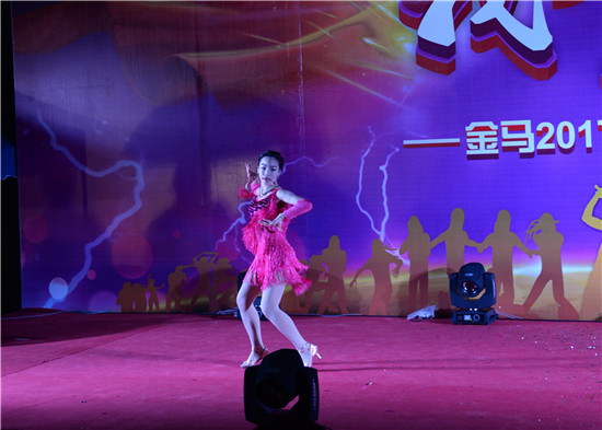 晚會在當日18:30準時開始,近300名金馬人有序齊聚臺下,一卸工作的疲累,放松精神,歡樂暢談,縱享小食。一開始是前期迎春文體系列活動的頒獎表彰環(huán)節(jié),籃球、羽毛球、桌球、乒乓球、越野、攀巖等各項活動獲獎代表分別從頒獎領導手中接過獎狀和獎金,喜悅之情溢于言表。隨后,文藝匯演正式開始,瞬時音樂響起,燈光閃爍,全場目光齊刷刷地射向舞臺。喜慶洋洋的“恭喜發(fā)財”率先登臺,來自機械車間的6名員工將濃濃的年味散播至現場每一個角落;開料車間創(chuàng)意策劃編排的“大王叫我來巡山”舞蹈完美融合生肖吉祥物寓意,打造出一個“眾猴拱雞”的趣味舞臺;來自玻璃鋼車間王曉玲的一首“映山紅”以其游刃有余的高聲調震撼全場;精益部的“ 鞋釘”小品雖僅2人登臺,卻憑借生動形象的人物塑造與演出征服了臺下評委與觀眾... ...匯演中場雖時有毛毛細雨拂起,但像雨像霧又像風的感覺為演出現場平添了一絲韻味,增添了一份浪漫的氣息,整場表演更是可謂精彩紛呈、引人入勝。