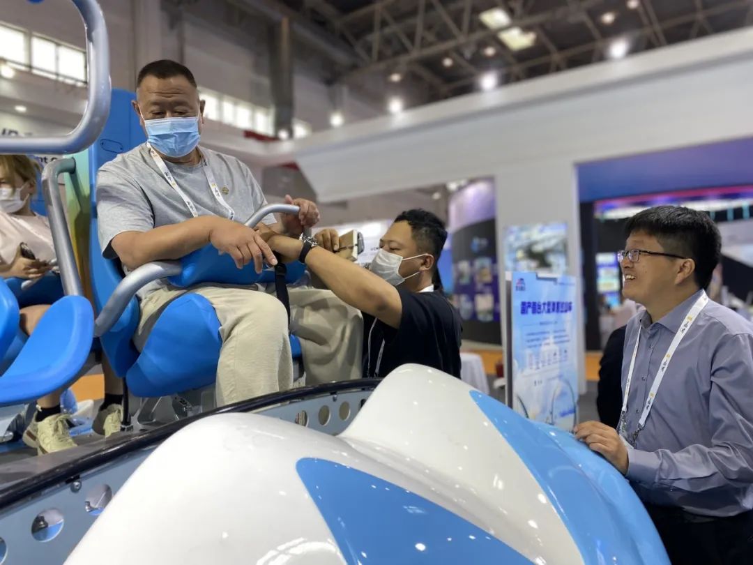 金馬文旅科技在本次展會上集中展示了飛行影院、黑暗乘騎、4D影院等多個虛擬沉浸式系列產(chǎn)品的落成案例,96座翻轉(zhuǎn)式飛行影院《飛躍泰山》、6自由度動感黑暗乘騎《盤古開天》呈現(xiàn)出的震撼效果體現(xiàn)了金馬文旅科技在沉浸式項目創(chuàng)意設(shè)計、內(nèi)容策劃及總體集成能力的跨越式進步,近兩年打造的一個又一個虛擬沉浸式高科技文旅示范標(biāo)桿項目,有效引領(lǐng)了行業(yè)創(chuàng)新,助力數(shù)字沉浸式產(chǎn)品高質(zhì)量發(fā)展,得到前來觀展、交流的行業(yè)領(lǐng)導(dǎo)、專家認(rèn)可與贊賞,客商合作意向不斷。
