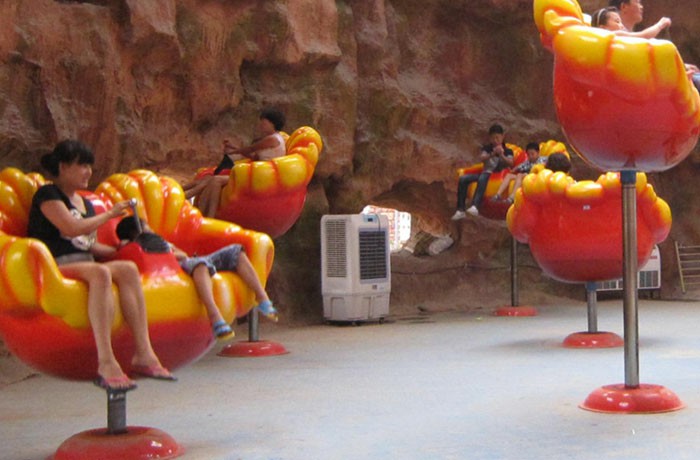 同時作升降、旋轉(zhuǎn)運(yùn)動。整套設(shè)備由座艙、平臺、氣動系統(tǒng)、電氣控制系統(tǒng)等所組成。蝴蝶造型的玻璃鋼座艙,栩栩如生。設(shè)備伴隨著明快的音樂有節(jié)奏地上升和下降,座艙可以乘坐二人,座艙的旋轉(zhuǎn)由乘客自由操作。同一時間場地里的座艙此起彼伏,猶如一片蝴蝶歡快地上下跳躍、舞動,使人有如置身于大舞臺,盡情地翩翩起舞。