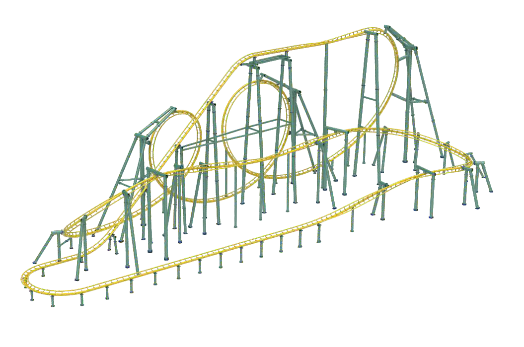 六環(huán)過??應(yīng)?創(chuàng)新技術(shù)與座式列?結(jié)構(gòu),爬升、翻滾、旋轉(zhuǎn)、下沖,刺激環(huán)環(huán)相扣,同時乘坐舒適,安全感??,體驗(yàn)?凡。該過??占地?積較?,運(yùn)營效率?,尤為適合中?型游樂場。